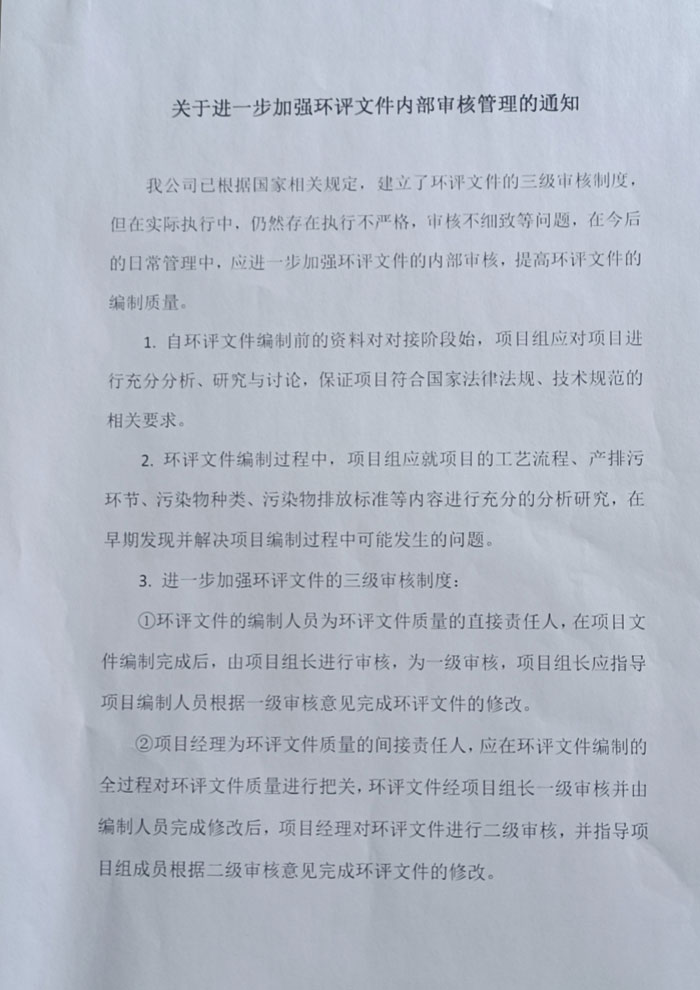 关于进一步加强环评文件内部审核管理的通知